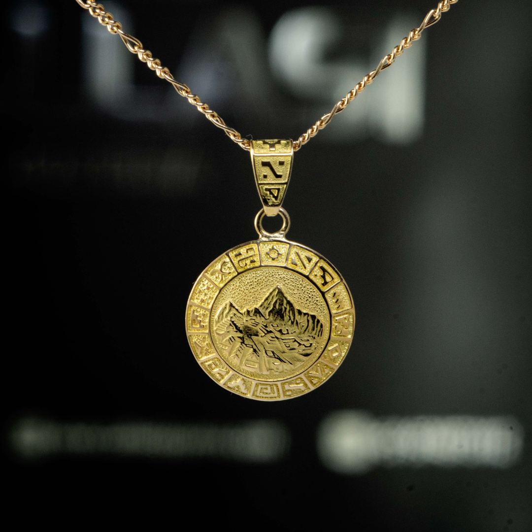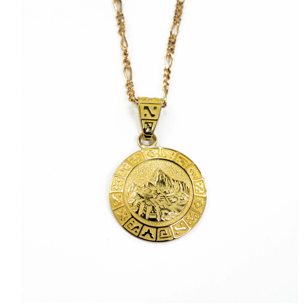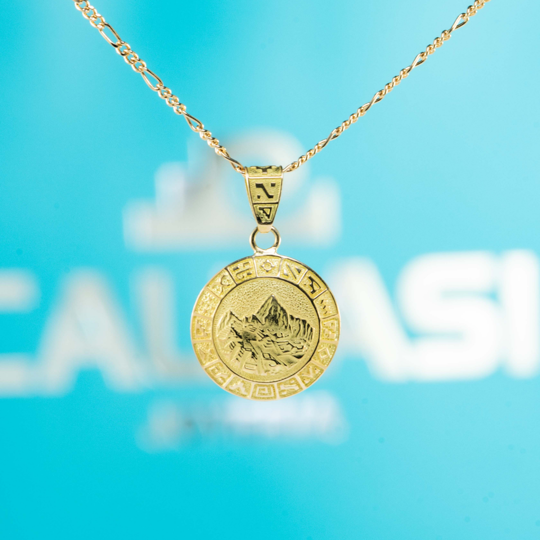 Dije Machupicchu Calendario Inca, oro amarillo de 18K, tiene 16mm de diametro